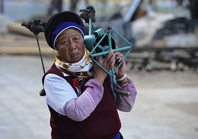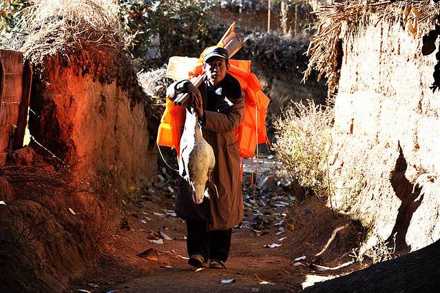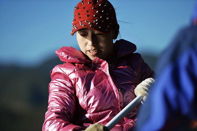 泸沽湖的第二天,当地朋友为我们预定了一艘摩梭族小木船,载着我们去湖中的鸟岛观鸟。鸟岛上的鸟儿见了人们四散而逃,拍鸟的计划落空了。当我们败兴而归时,划船的摩梭族父女俩让我们产生了兴趣,尤其是女儿给我们唱着山歌并讲述着摩梭族的故事,并不时的还与我们谈笑逗乐,在下船时还邀请我们去她家里做客喝茶。照片拍摄于2103年12月9日~10日泸沽湖