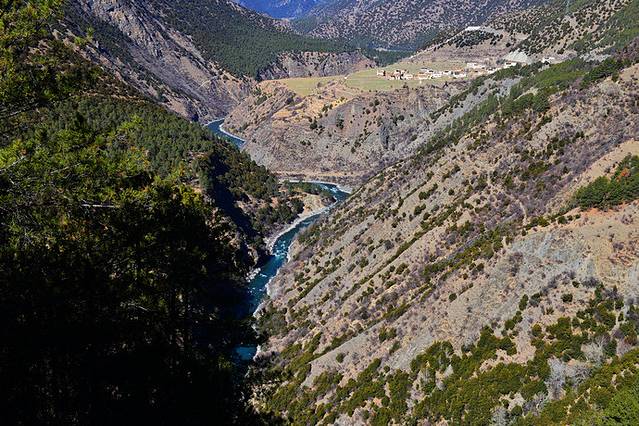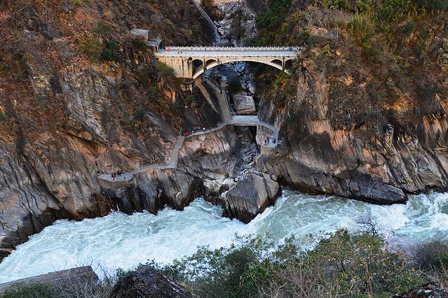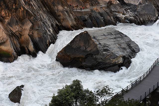 虎跳峡是中国最深的峡谷之一,位于云南省迪庆藏族自治州香格里拉县,距县城105公里,以“险”而闻名天下,是世界上最深的峡谷之一。峡谷激流中有一块巨石,距离两岸不到15米,相传猛虎下山,在江中礁石垫脚越江。