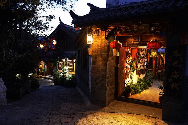 走到客栈外的小巷,天已渐黑,终于有自己的时间默默感受这里的清闲时光