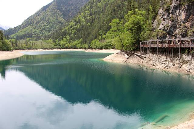 从珍珠滩瀑布出来后我们直接乘坐观光车到九寨沟的另一条沟Y字左线的则渣洼沟,这条沟还真心没什么看的,途中经过的上、下季节海全部没水,处于干枯状态