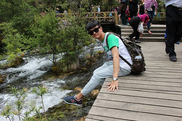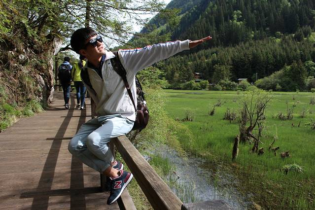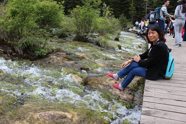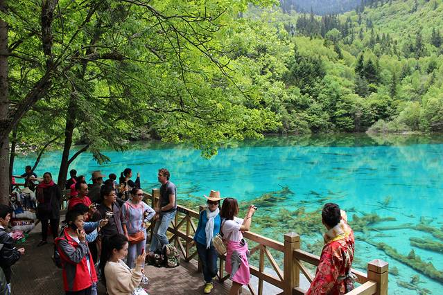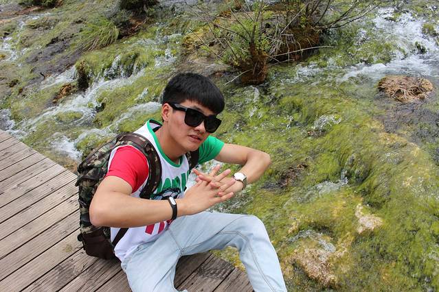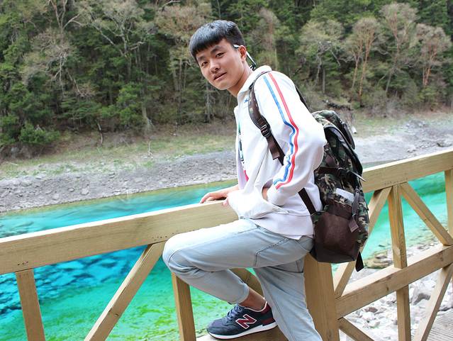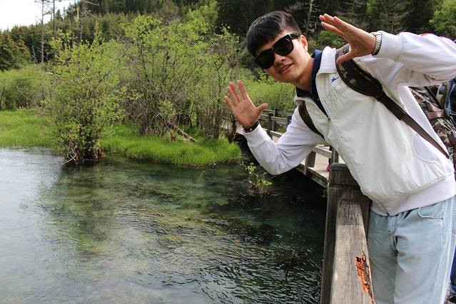 后面的游客就有点煞风景了,九寨沟游客太多,若你想将人放置在风景中,难免会有陌生人的干扰,习惯就好