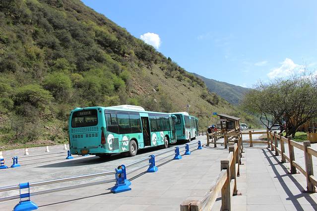 若上下山选择缆车的话离步行通道还有一段距离,得乘坐景区外免费的交通摆渡车,跟九寨沟景区内的观光车一样