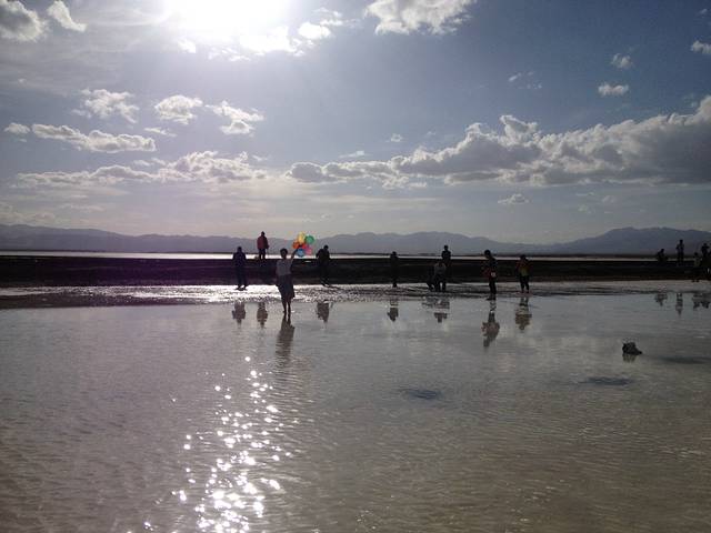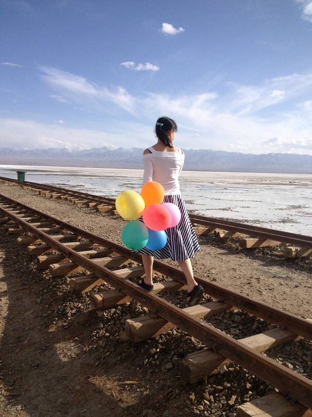 茶卡盐湖。me,正面不能见人就只好给你们看背面了哈哈
