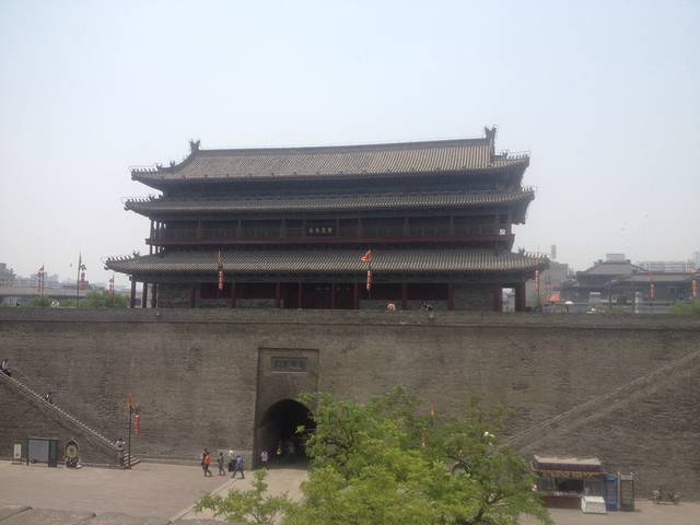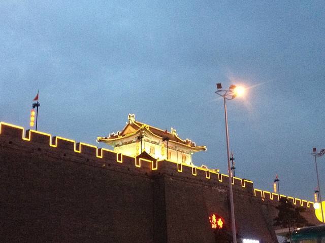 这个应该是火车站前面的城墙。我在从西宁回来西安的时候上去爬了,上面骑自行车要押金200,记得带现金,我是问了好多人才找到个正常人用支付宝换了现金,真的要被气死...还有就是白天很热!最好旁晚6点以前上去,自行车骑到要关门快了再下来。