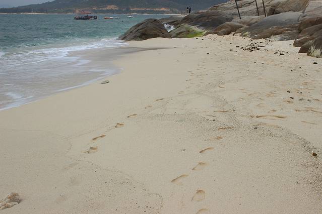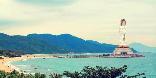 南山,面朝南海,森林覆盖率为97%,是中国最南端的山。南山历来被称为吉祥福泽之地。据佛教经典记载,救苦救难的观音菩萨为了救度芸芸众生,发了十二大愿,其中第二愿即是“常居南海愿”。著名的南海海上观音圣像。观音圣像一体化三尊造型,宝相庄严,脚踏一百零八瓣莲花宝座,莲花座下为金刚台,高达108米。沙滩去的比较晚,差一点点就不让进了 ,赶紧拍几张相片走人。
