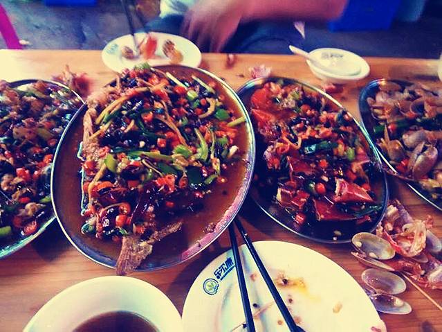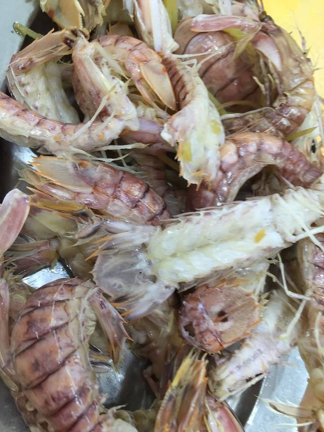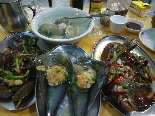 从南山回来马上杀到第一市场去吃海鲜,第一次在这里买海鲜,让店里的师傅陪我们去的,买了一条大龙虾200元,买了几种贝类的海鲜,一条鱼,对于北方的汉子来说还是比较新鲜的,对于无辣不欢的我,首选肯定是四川菜馆,选了一个四川的加工店,龙虾一半爆炒,一半做海鲜粥,加工费70元,鱼的加工费30元,贝类的具体多少忘记了,最后花了不到500元。吃的还是很爽哒