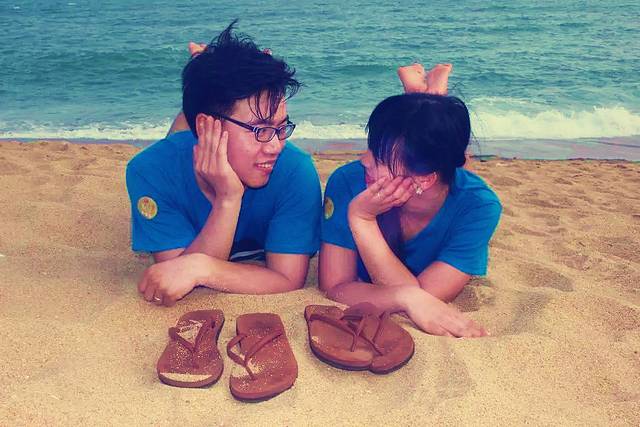 游泳衣3套,裙子4个,情侣装3身,2双拖鞋,近视游泳镜(近视眼的小伙伴可以考虑淘宝上买的),在网上租的水下相机,(花费300大洋就搞定了)单反、支架基本上我们俩都合影都是支架自拍出来的......