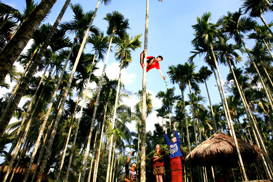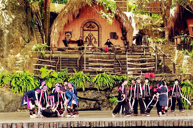 海南岛的旅游景点要有自己的特色,而其独有的土著民族——黎族就具有独特的民族风情。槟榔谷可以说是海南民族文化活化石,这里保存着最原始、最淳朴的海南土著民族黎族的风情。槟榔谷还是海南唯一“活的”非物质文化遗产的聚成宝库,最具代表性的要数黎族传统纺染织绣技艺和黎族绣面纹身了。黎族织锦是黎族同胞最值得骄傲的中国之最了,因图案精美、色彩艳丽而享誉海内外。而纹脸、纹身是黎族至今保存最古老的文化遗迹。