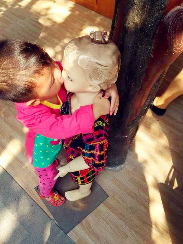 中途看到一个很有爱的小宝贝,事实证明女汉子是需要从小养成的...