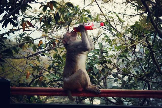 坐在凉亭休息的期间,很可爱的小猴子突然从我的包包里偷走了一瓶和其正,吓死宝宝了