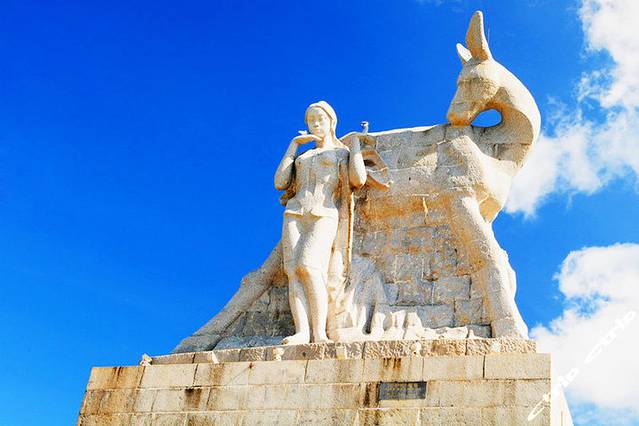 鹿回头有一个海南黎族美丽的爱情传说:古代一位英俊的黎族青年猎手,头束红巾,手持弓箭,从五指山翻越九十九座山,涉过九十九条河,紧紧追赶着一只坡鹿来到南海之滨。前面山崖之下便是无路可走的茫茫大海,那只坡鹿突然停步,站在山崖处回过头来,鹿的目光清澈而美丽,凄艳而动情,青年猎手正准备张弓搭箭的手木然放下。忽见火光一闪,烟雾腾空,坡鹿回过头变成一位美丽的黎族少女,两人遂相爱结为夫妻并定居下来,此山因而被称为“鹿回头”。根据这个美丽爱情传说而建造的海南全岛最高雕塑“鹿回头”已成为三亚的城雕,三亚市也因此得名“鹿城”