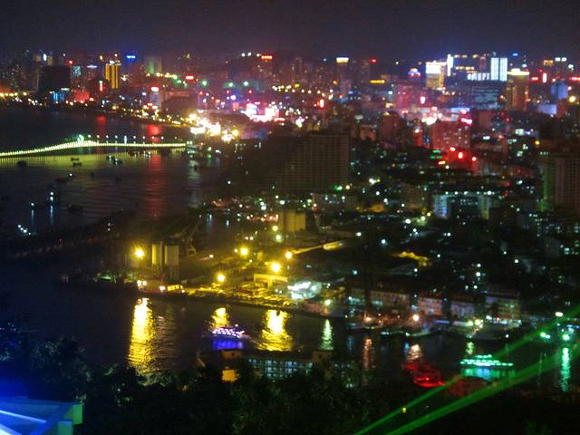 照的虽然不是特别美,但是晚上的夜景是很美的,可以看到整个三亚的全景。推荐傍晚去刷一下,几可以看演出,又可以看夜景,我们是中午吃完饭就过去了,做的摩托车,一定要砍价,10元搞定,一直等到晚上才看完表演和夜景才走的。在网上团的票才几块钱。没有做电瓶车,真心不是很远,自己走上去也就20分钟左右。
