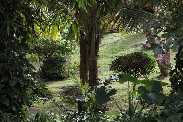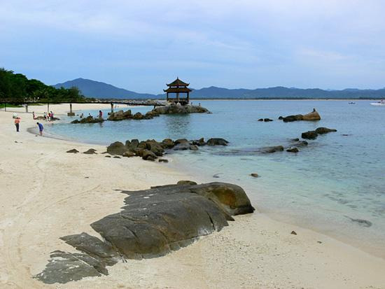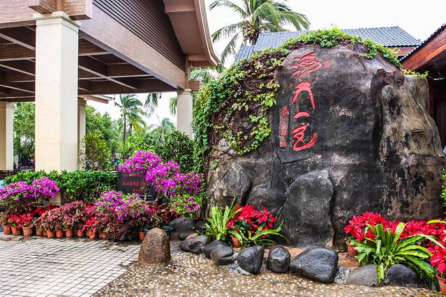 今天我们去蜈支洲岛,应该说是个休闲度假的好去处,它的主要景点和游玩之处都在岛西部和北部,东、南部只是一些礁石和别墅,不去也罢。我们老的老小的小,肯定不会去玩潜水啦。就带他们去看看风景。我们顺着山坡小路向南走进山里,一直走到妈祖庙那里再向北折回到海边去,可以玩儿的更全。一路上可见各种花草树木,景色非常好。