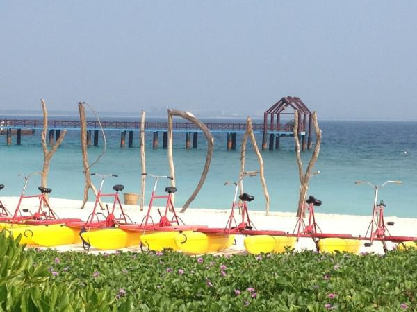 这里的海湾白沙细腻,海水清澈见底,阳光一照就呈现出五彩斑斓的颜色,很是好看。