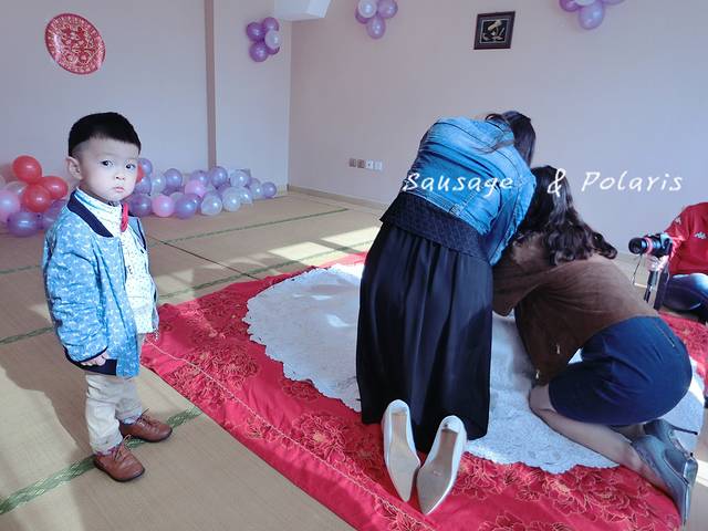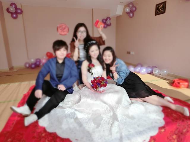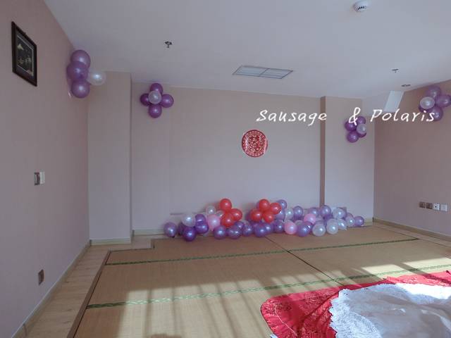 新娘租的是宾馆的韩式房,也就是榻榻米。因为是在宾馆,所以我感觉不敢在房间里过多装饰。房间布置得还算清新简单大方。