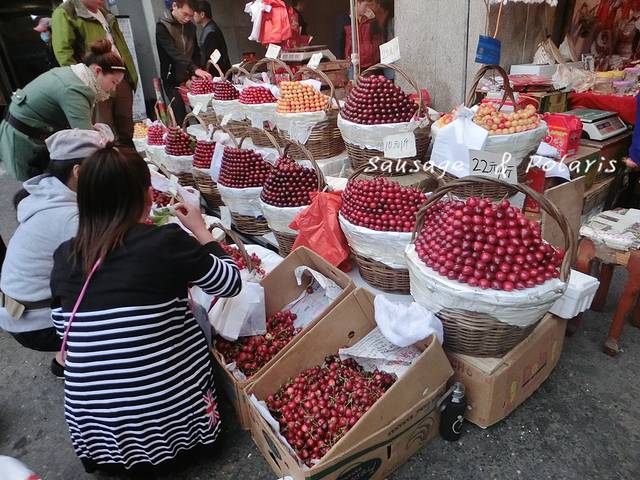大连旅顺的樱桃一直比较有名,个大味甜。而且这种摆樱桃的方式成功吸引了很多顾客。