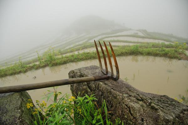 这是农民大伯劳作的工具,是不是想起了猪八戒的九齿钉耙!这已经算是古老的劳作工具了,而且很有地方性特色。一般的地都是用锄头,而且现在地儿用牛来耕地的很少了,牛犁耙都可以进博物馆了。可能是贴合这里的地貌和泥土特性,牛耕在这里还是很常见的。