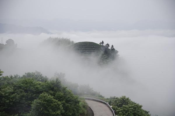 云海中的一条小路,这是用水泥铺起来的路,约1.5米宽。车子是肯定无法在这上面行驶的,不过电瓶车、自行车还有小三轮车倒是可以快乐驰骋。我喜欢这条路,主要还是喜欢它的意境。在云深之处通向远方,却渐渐淡出我的实现,可望不可即。就像人生,你永远不会知道接下来的路是怎样的!