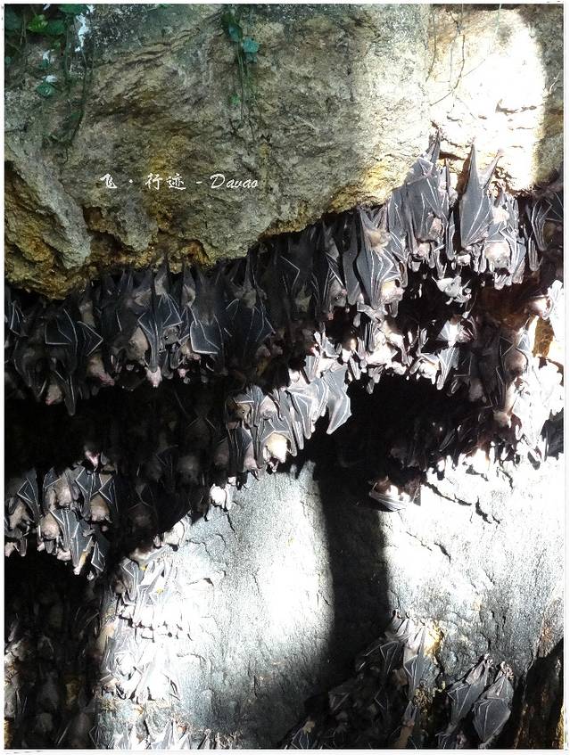 蝙蝠洞里嘛,四个洞口,黑压压的一片蝙蝠,还有蝙蝠的臭味,密集恐惧症的人慎入。其实蝙蝠洞刚发现的时候只有一个,有三个洞都是人工开出来的。我估计当时蝙蝠君们还在嘀咕,怎么家里的大门多了三个……