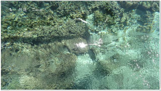 浮潜的乐趣就在于,可以看到珊瑚,而且有小鱼能在眼前游来游去,可爱的很!!很可惜,第一次浮潜没经验,没有带个防水相机,要不就可以把水中的美景拍下来啦。只好放两张行船过程中拍的两张。能看到水底的礁石,珊瑚就没办法拍到了。没关系,以后还有机会的嘛。我真是爱死浮潜了!