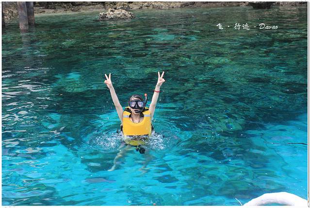 毕竟会游泳,比较不会怕水。同行的陈小P同学就麻烦了,不会游泳所以虽然穿着救生衣还是会有心理恐惧,下了水,虽然有雅萍姐全程当教练,但还是一直出问题,最后才发现原来她的呼吸管会进水,有点悲催。不过后来换了个呼吸管就好多了。