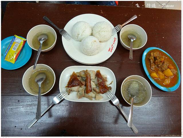 午饭在一家名为Eden‘s Lechon的小店里吃的,咖喱牛肉,一小盘烤乳猪,三份米饭,四碗清汤。汤咸的很,不过店员没给我们收汤钱。大概是因为我们只要汤不要肉的关系吧。所有的菜口味都有点重。