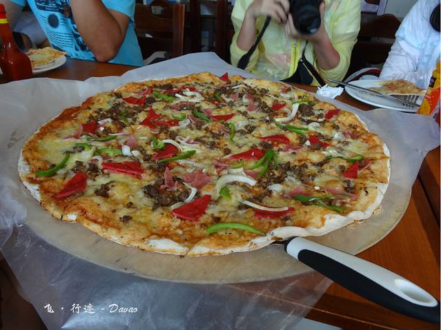 两个大大的披萨加上人手一罐的饮料,一共是1020比索。很实惠,吃不完还打包了。