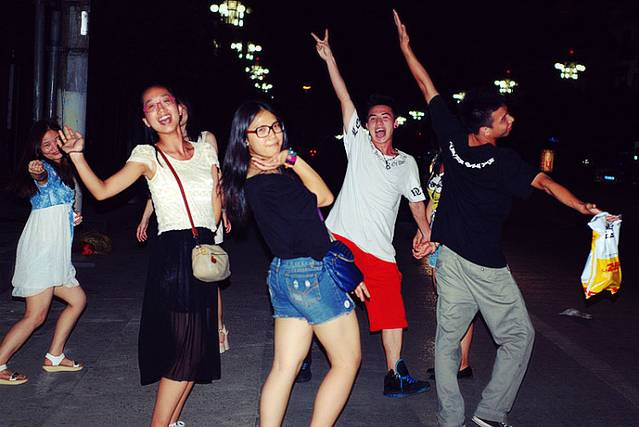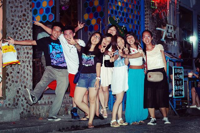 晚上,是属于我们自己的私人时间,有时候不得不说,缘分是一种很神奇的东西,晚上吃饭的时候在同一间店里遇到了中午同桌吃饭90后团友,于是组成了8人小组,饭后直接向阳朔的西街出发!晚上的西街很热闹,到处可以听到歌声,这是一个很多民谣歌手会被邀请过来坐台演出的地方,不知不觉让我想起了“萧十三郎”我那从设计界改行到民谣歌手的朋友~~