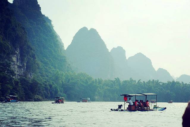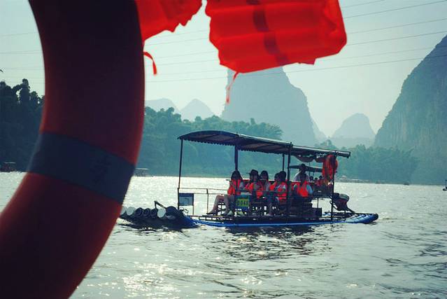 竹排上,山水之间,大喊也是我做的疯狂之事,听着那遥远而微弱的回声,才会让你更深的感觉到大自然的美好!!去旅游,就应该把烦恼与苦闷放下,这样才会收获快乐~~