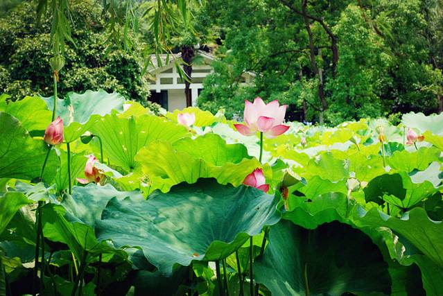 荷花池里的荷花开了,粉嫩粉嫩的~~想起了那一句:予独爱莲之出淤泥而不染,濯清连而不妖。