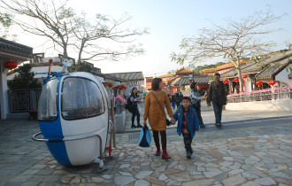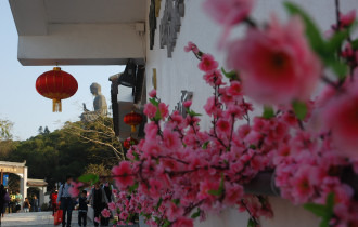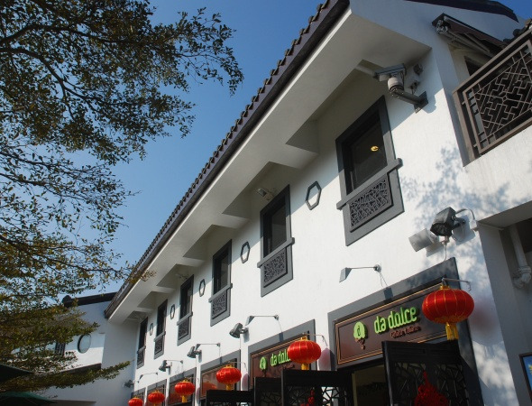大屿山这边不大,是一个岛屿,山顶有佛像。底下有市集,这里整体的建筑都很苏州,后面有一条街很有意思,左京城右苏杭的。