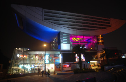 中环步行10分钟左右,可以来到山顶缆车总站,坐缆车上山,人比较多,不愿意等的话可以坐BUS上山,这里坐缆车八达通也可以用。山顶一出来,就是蜡像馆,再上凌霄阁平台,就可以看到香港的夜景,好美!虽然风很大,吹得我很冷,但是还是值得一来,不过拍夜景一定要带脚架,不然很难拍的出好照片!!