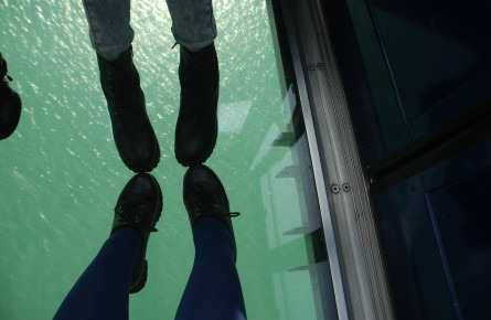透明底的水晶车,能够清澈的看到底下的风景