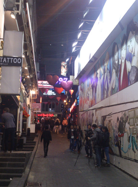 在香港的朋友,下班之后过来跟我回合,带我们过去兰桂坊体验香港的夜魅力,我们来到兰桂坊的时候是11点左右,朋友说:现在这个点来这里的都是游客,真正出来玩的人还没有开始出门,这里真正热闹要等到1点以后。真的想要体验香港的兰桂坊生活的话,就要那个时间来。