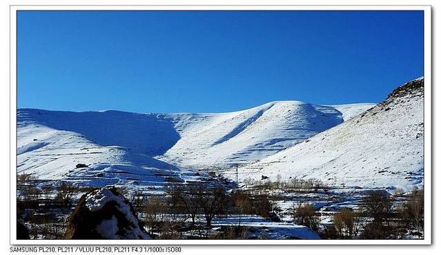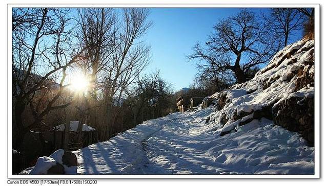 站在村中高地看对面积满白雪的山坡,随着太阳的升高光和影在眼前不断地变换着色彩