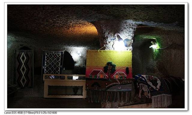 逛了一段时间村里已经慢慢有了人的气息,有一家店铺开了门,进去后的景观更让人惊异,这房子整个就是在石头中凿出来的。