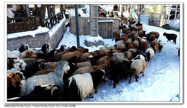 冬天的Kandovan风景是很不错的,但是可能来的太早了,又是一个人没有(最近好像去哪儿都很难见到人)只能自己找路游览,这个村子不比之前的阿布亚娜,总是走一走就没路,貌似一条条蜿蜒上山的小路总是终结在某家的门口,七饶八绕也总是在不大的地方徘徊。这还不算什么,在打算绕路上山的时候突然被几只敬业的牧羊犬包围了,这回可不像上次可以坐在车里感受被狗狗追逐的刺激,赶紧扭头装作心不在焉的样子往回撤,还好是牧羊犬,看羊为主,见我们无意偷羊就没再管我们了。。。