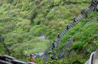 下了缆车也还是要爬1000多级的木梯才能到达蘑菇石呢,干巴得!