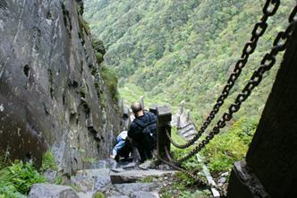 如此陡峭惊险的山路,走着双腿也在发抖呢!