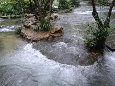 水上森林又名瑶池。灌木丛生的树林中,清澈的河水穿梭而流,到处是古藤缠绕,绿荫绕绕。