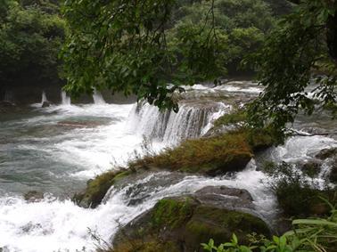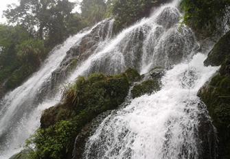 走过小七孔桥,曲行百米,即是拉雅瀑布。拉雅瀑布就在路旁,从山上飞流而下,站在瀑布脚下水雾扑在脸上,再慢慢感受这瀑布的雄伟壮丽。这样近距离的感受瀑布的气息也别有一番味道。