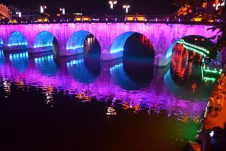 霓虹装饰的新大桥,不停地更换着颜色,站在桥头视野开阔,心清神爽。