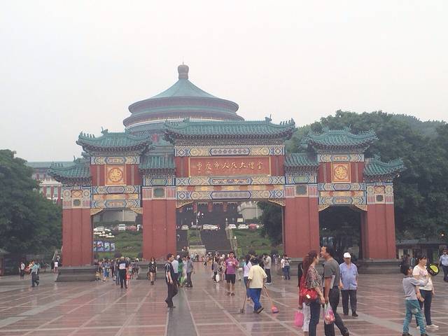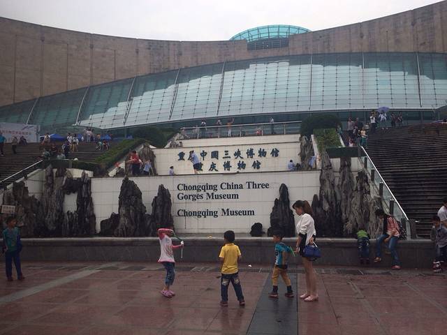 然后我们就去了三峡博物馆 为什么呢 因为它是不收费得呀 哈哈 当时百度地图了一下方位做公交车去得 下车就看到大礼堂了