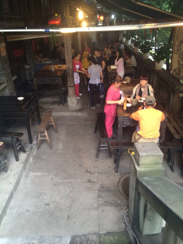 碗具茶具都是三国那种得感觉。桌子椅子也是纯木得那种。这顿饭吃了七十五快。重庆这边吃饭都有餐位费一人俩快不知道为什么