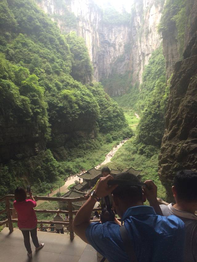 今天是跟团走得第一天 六点多就起了七点多上大巴出发去仙女镇。我们有一百人左右 一共俩个大巴。坐了大概三个多小时,一路上真的超惊险啊,这得路各种急转弯,从窗口往下看就是悬崖得感觉,真的一定要扣安全带,超吓人得。