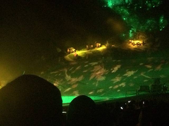 这是我最喜欢得一个行程了,啊,回想起来都好激动,狠可惜不能直接直播给你们看啊。听导游说这个印象武隆是张艺谋印象系列中得一部,阿凡达导演卡梅隆还来指导过灯光呢,不得不说他们真的好伟大。导游说这是唯一得自费项目,所以我们只去了一个车得人,不过不来真的会后悔,就连我妈都一直说震撼