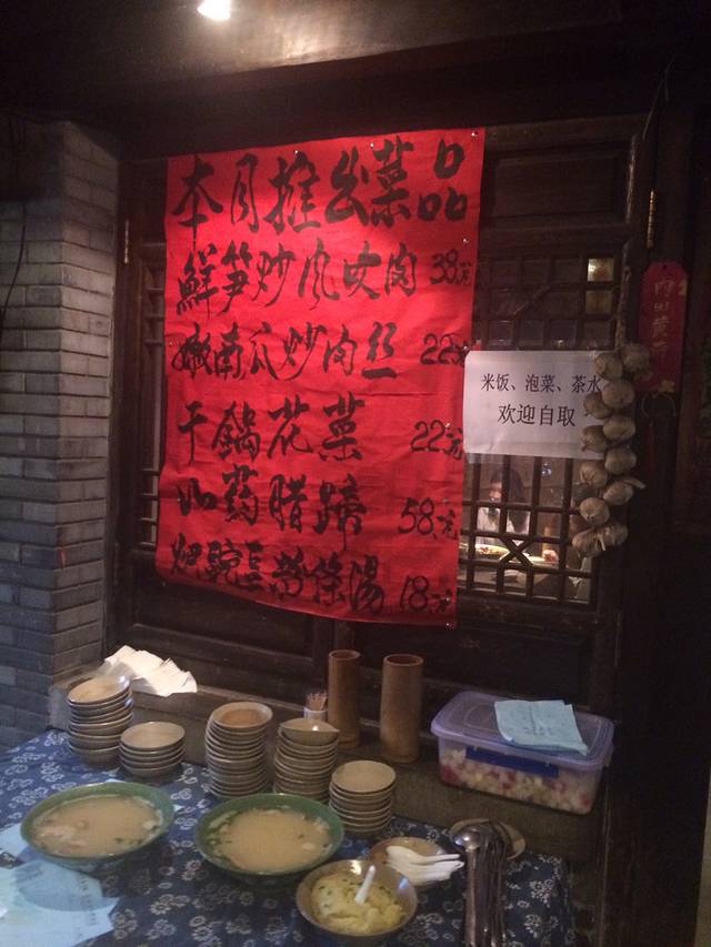 到吃饭的时间拉 这个饭店是在网上特意找得 从博物馆出发坐公交到湖广会馆那边 我去得时候湖广会馆已经关门了 不过也没打算逛那边 感觉没多大意思呢 下公交后跟着百度走看到个狠不起眼得入口 特别容易把它忽略 我也是走过了又回去得 下去一直走只有一条路 中间还有个青年旅舍。走到头看到有油烟了就是那家。当时我们又多走了好多路问路走回来才知道就是这家。