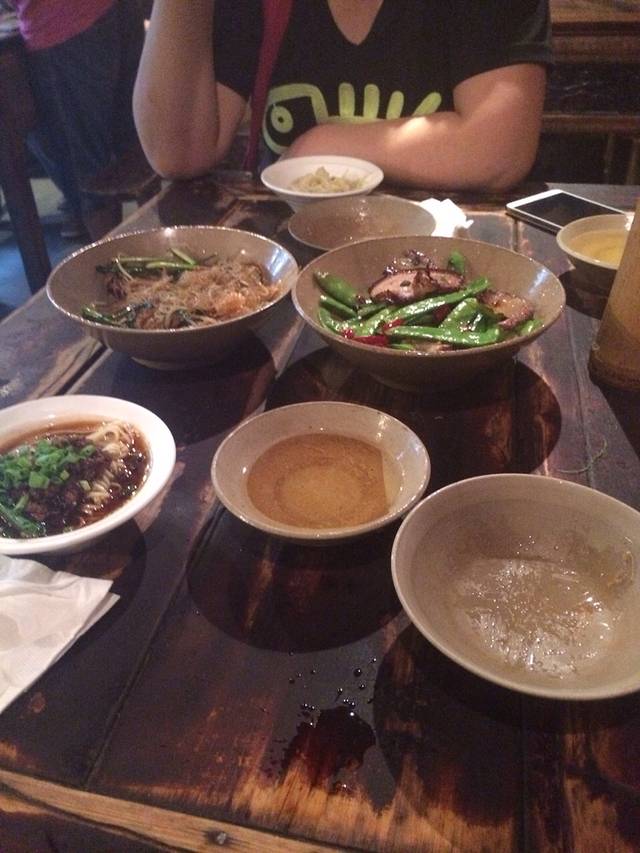 担担面真的很好吃 妈妈的清汤面 俩个菜一个是四季豆炒腊肉 还有一个是随便炒 好随便哦。是觉得腊肉不是特色吗。来尝尝 真的蛮咸得。菜都不辣。特意没要辣得。你们可以要辣得尝尝