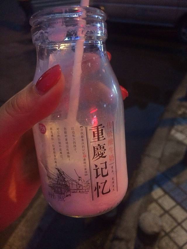 在附近超市买的本地酸奶。就是觉得瓶子好看又不难喝。奉劝不要去磁器口洪崖洞买 要十块。超市只要6快得