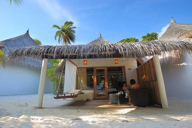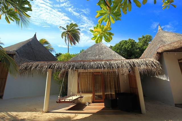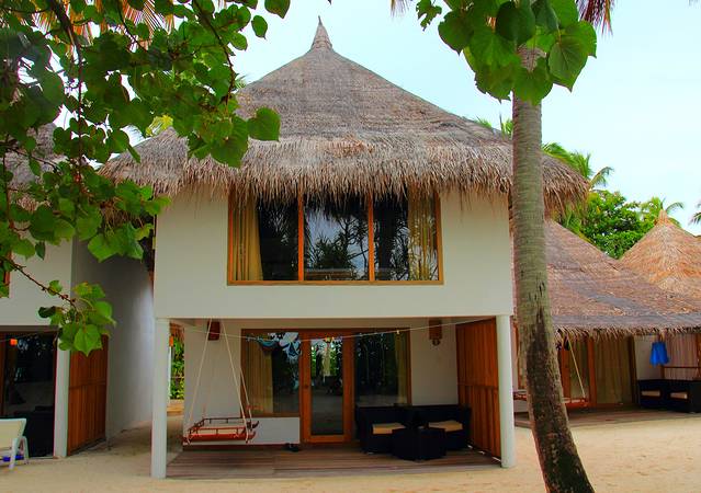 安嘎嘎岛有沙滩屋和水上屋,沙滩屋 45 平米,每间房的周围有最完美的沙滩,全天都有冷热水供应,室内配备了各种齐全现代的设施包括:热/冷水,空调,迷你冰箱,卫星电视,吹风机,茶/咖啡设施,卫生间,豪华家具,屋檐下有吊床,日光椅。水上屋有老水屋和新水屋之分,现在的码头就建在了新水屋的旁边,离大堂和餐厅比较近,老水屋就离大堂和餐厅较远。